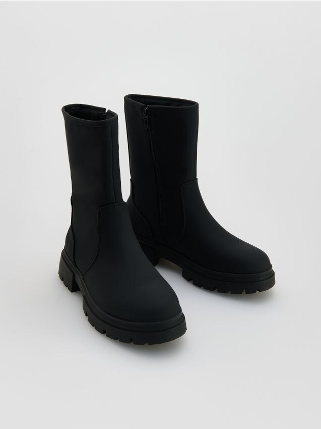 - Model: Reserved - Ocieplane botki z imitacji skóry - czarny