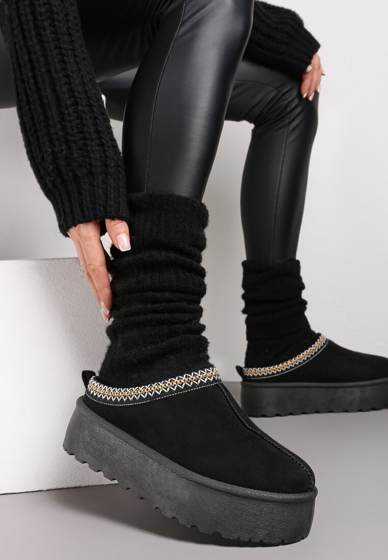 Dodaj lub przeczytaj opinie o Czarne Kapcie na Grubej Podeszwie z Ozdobnym Futerkiem Sunessa