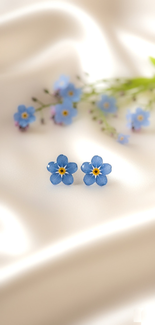 6. Kolczyki wkrętki z prawdziwymi niezapominajkami