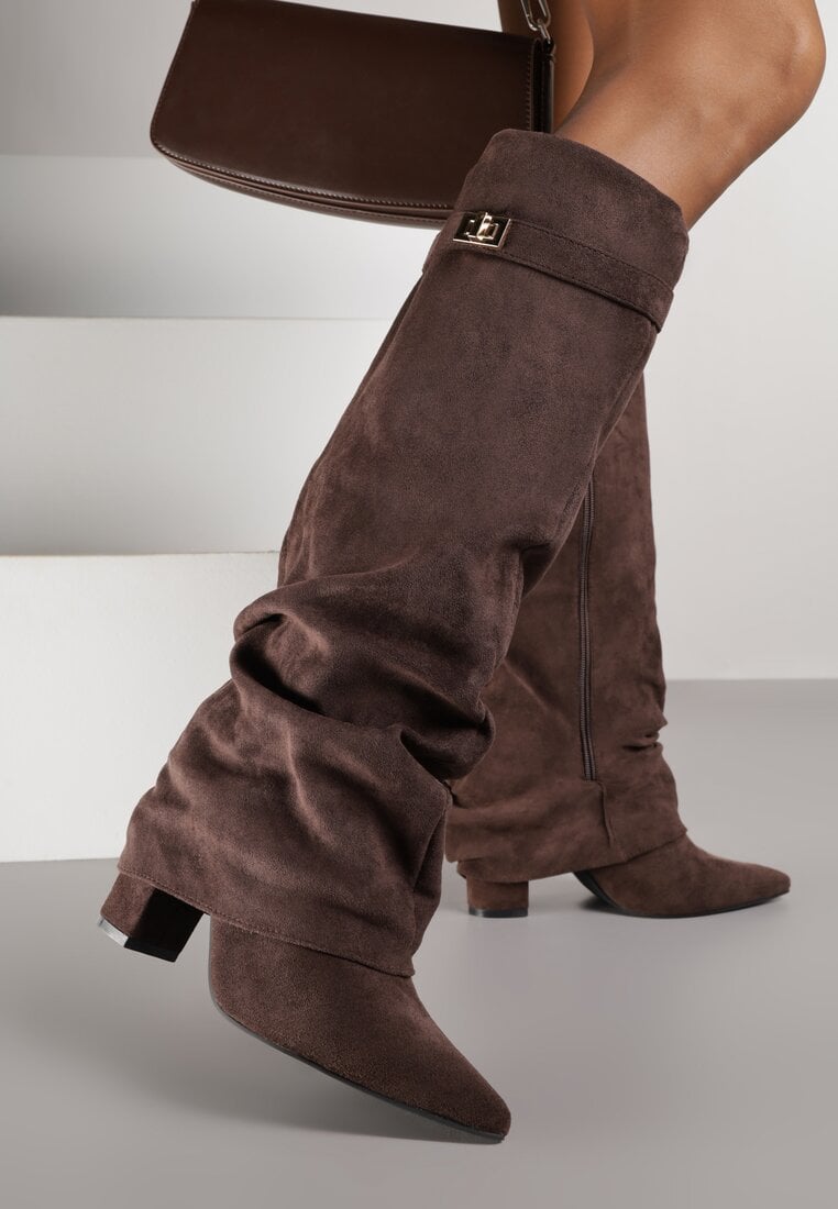 - Model: Brązowe Kozaki na Słupku z Marszczoną Cholewką Imitującą Nogawkę Rittia