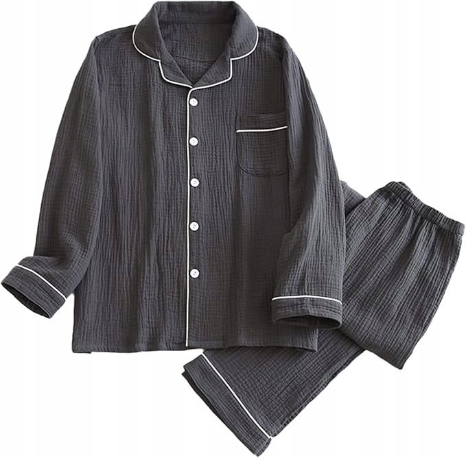 Dodaj lub przeczytaj opinie o Bawełniana Piżama Męska Dwuczęściowa Na Guziczki Z Długim Rękawem Szary M
