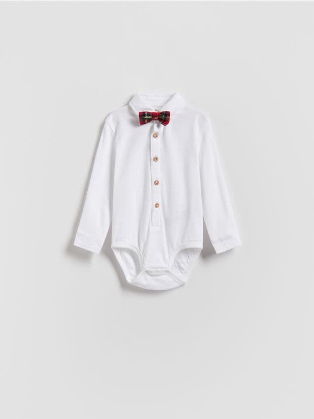 - Model: Reserved - Bawełniane body z muszką - biały