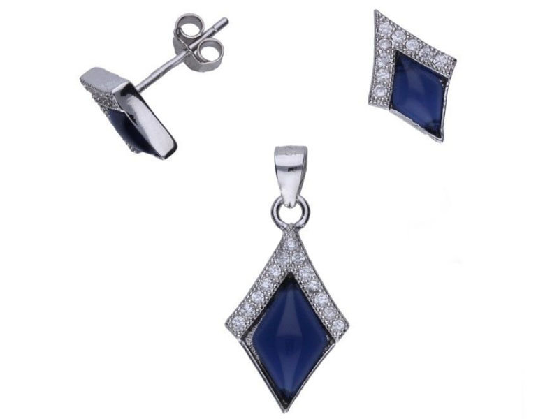 - Model: Srebrny komplet biżuterii 925 szafirowe romby